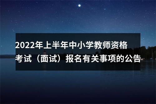 根据教育部教育考试院《关于2022年中小学教师资格考试考务相关事项的通知》(教试中心函〔2021〕123号)、河南省教育厅《关于印发〈河南省中小学教师资格考试和定期注册制度改革实施方案(试行)〉的通知》(教人〔2015〕501号)等文件规定,现将2022年上半年我省中小学教师资格考试(面试)报名有关事项公告如下: