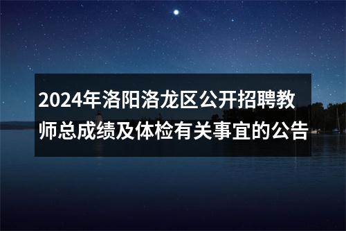 原标题:2024年洛龙区公开招聘教师总成绩及体检有关事宜的公告