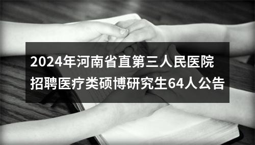 【2024年河南省直第三人民医院招聘医疗类硕博研究生64人公告】相关岗位: