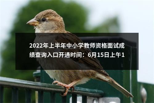 【2022年上半年中小学教师资格面试成绩查询入口开通时间:6月15日上午10时】相关岗位: